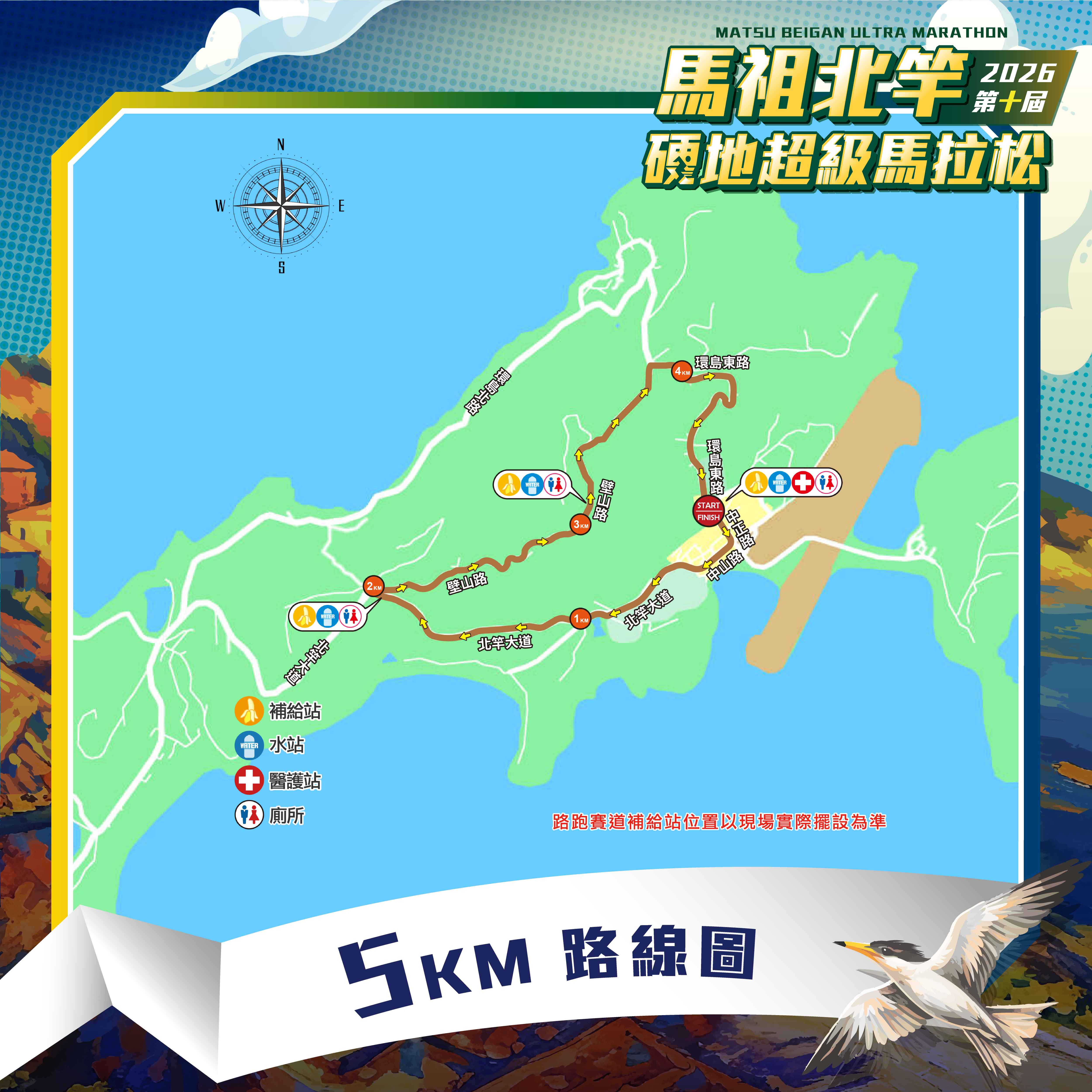 路線:起點(START)→直行中正路→右轉中山路→直行北竿大道→右轉壁山路→右轉環島東路→直行中正路→終點(FINISH)