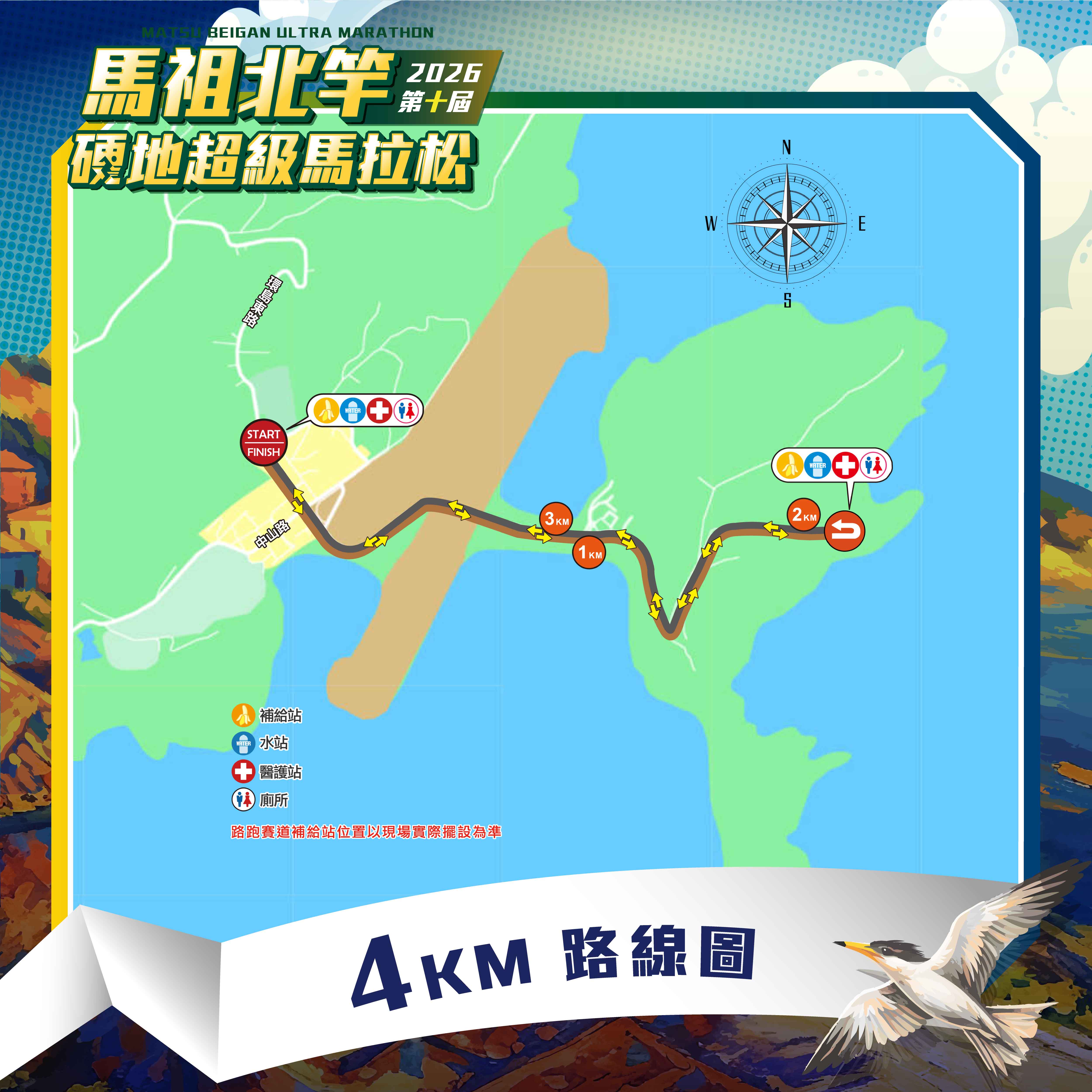 路線:起點(START)→直行中正路→右轉中山路→直行北竿大道→尼姑山折返→左轉環島北路→右轉環島東路→直行中正路→終點(4圈)