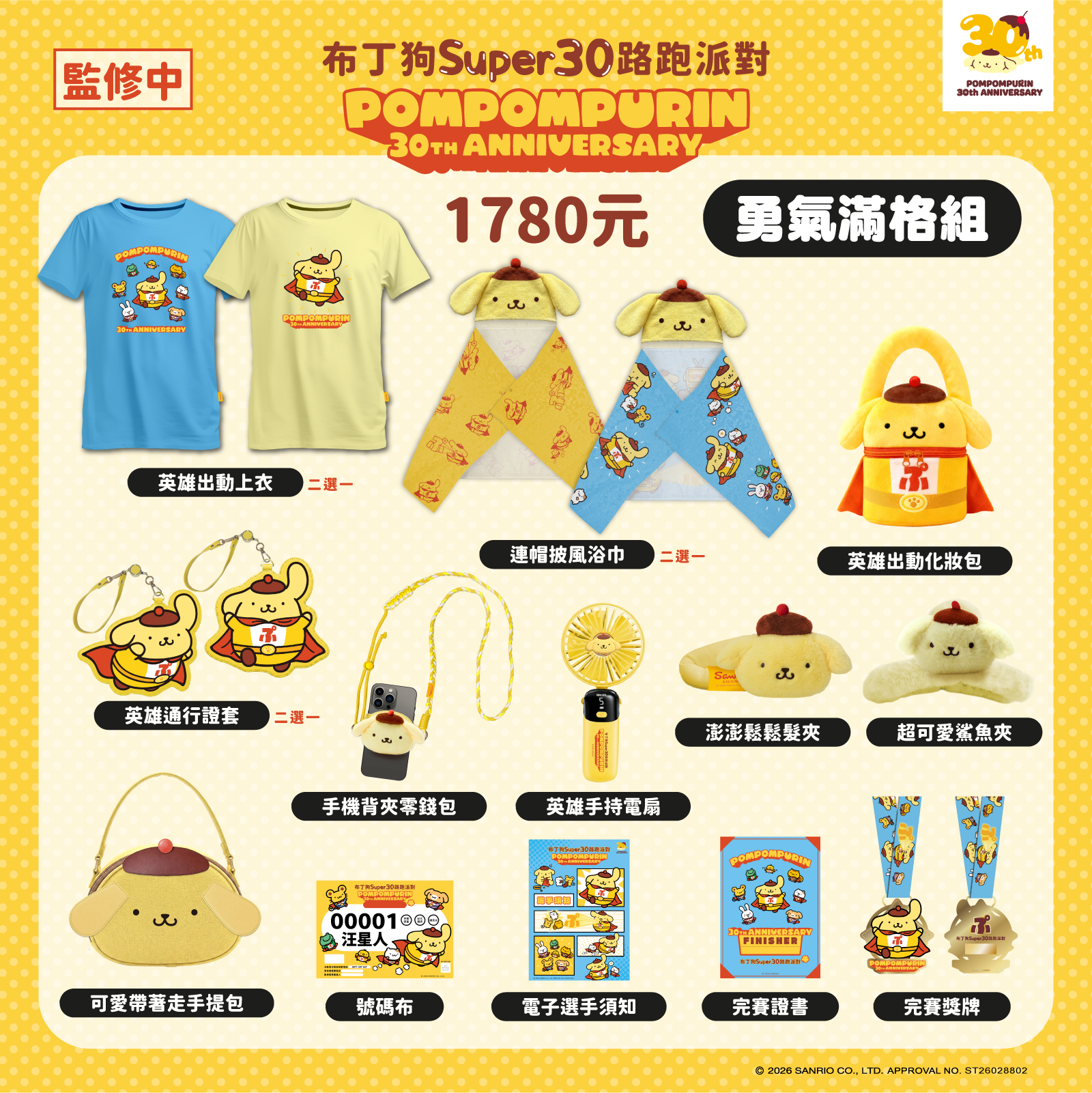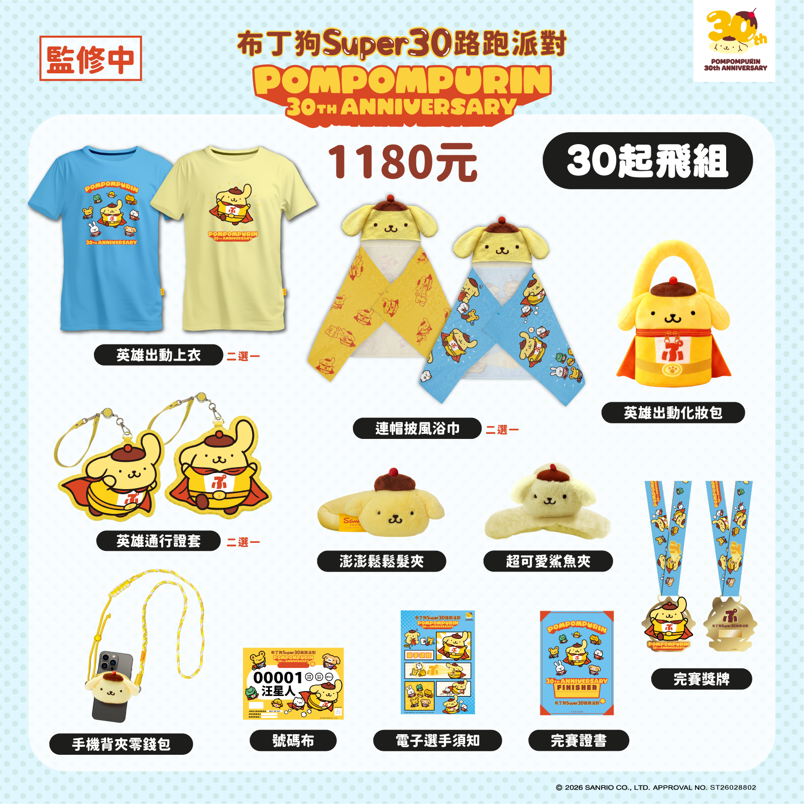 現場將充滿30週年限定元素,從超人布丁狗主題的活動上衣、連帽披風浴巾,到澎澎鬆鬆髮夾、鯊魚夾等一系列超萌周邊,每個都是為特別的出道紀念盛會而設計。完賽後還有專屬獎牌,粉絲一定要收藏這份與布丁狗並肩奔跑、共創回憶的感動!