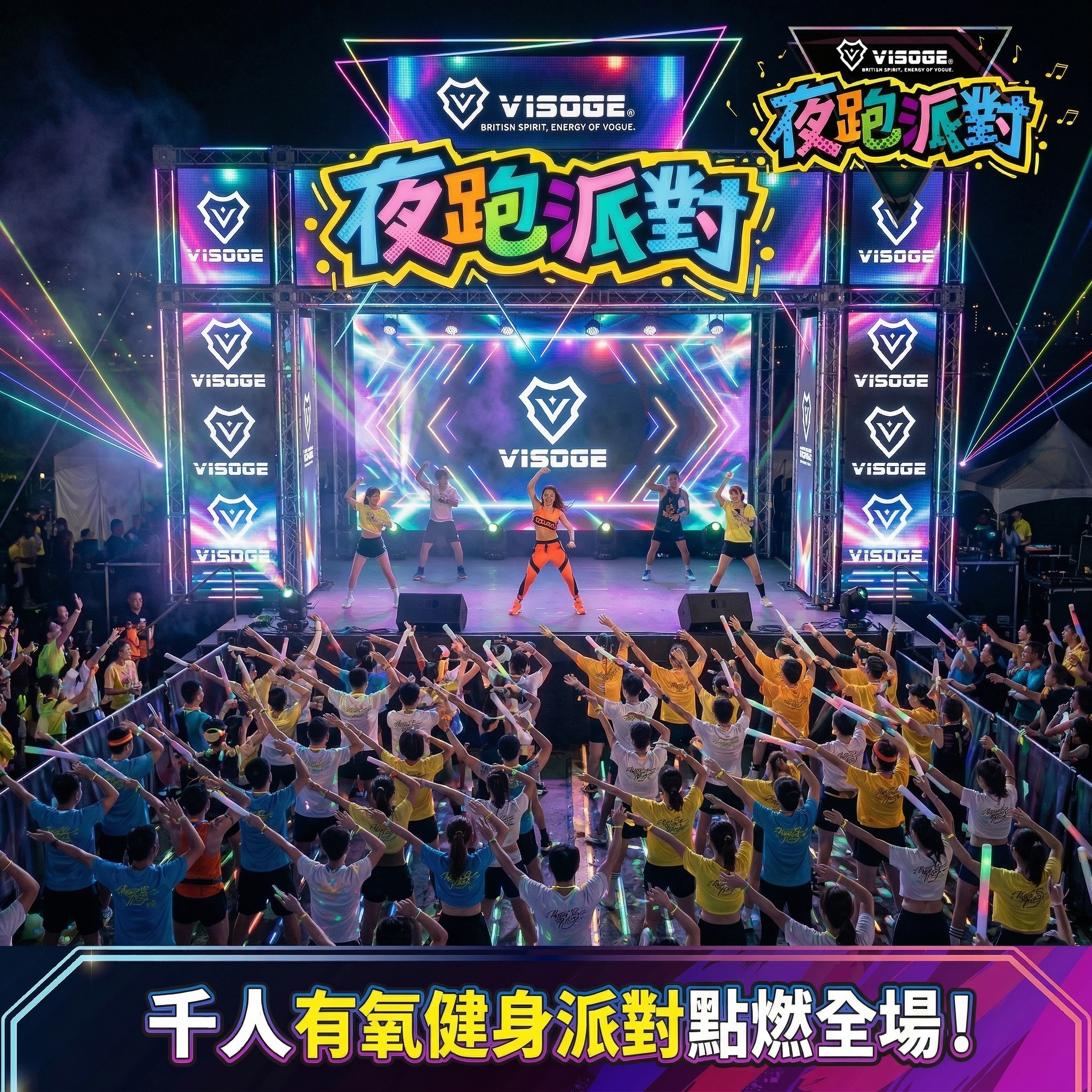 整天開會、盯著螢幕用AI、說著該說的話、規律的煮飯、無聊的獨自運動——你上一次真的嗨起來,是什麼時候?VISOGE 夜跑派對就是解悶新出口:這晚不追速度也不追AI的答案,只追那個讓你整個人炸開的感覺。不用想工作、看通知、也不用表現得很正常。就跑,就嗨,就讓音樂把你整個人帶走,用有氧健身燃爆你的熱血DNA,電音 DJ 炸翻全場不斷電,夜光彩繪讓你全身發光,千人夜光賽道讓幾千個同樣需要放電的人,在同一個夜晚一起爆發——跑完派對繼續,這個夜晚你不會想讓它結束。I人都想去了,你還在等什麼?一起嗨!