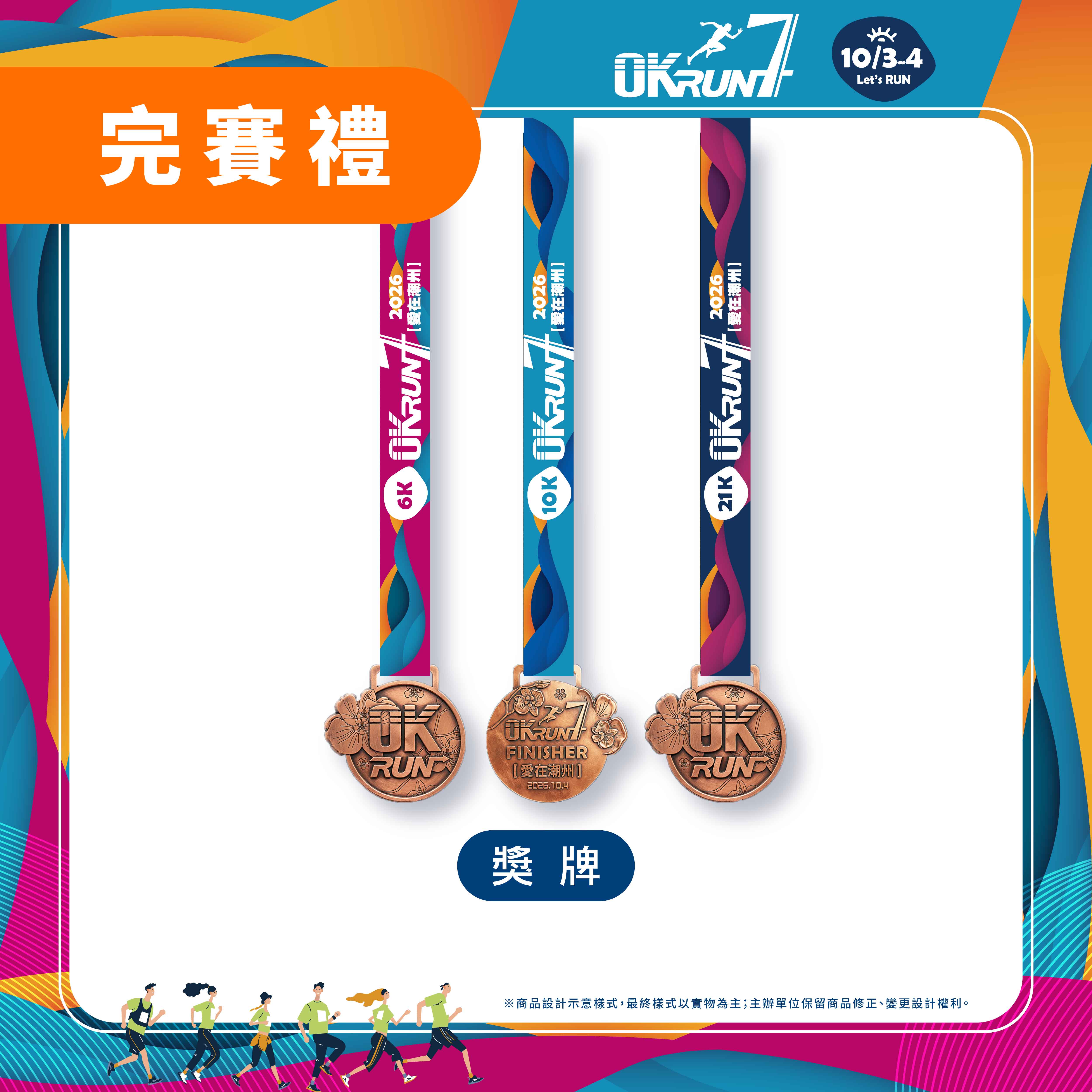 - 完賽紀念獎牌為初步樣式設計圖,最後打樣確認前,大會有權利變更其樣式與顏色。