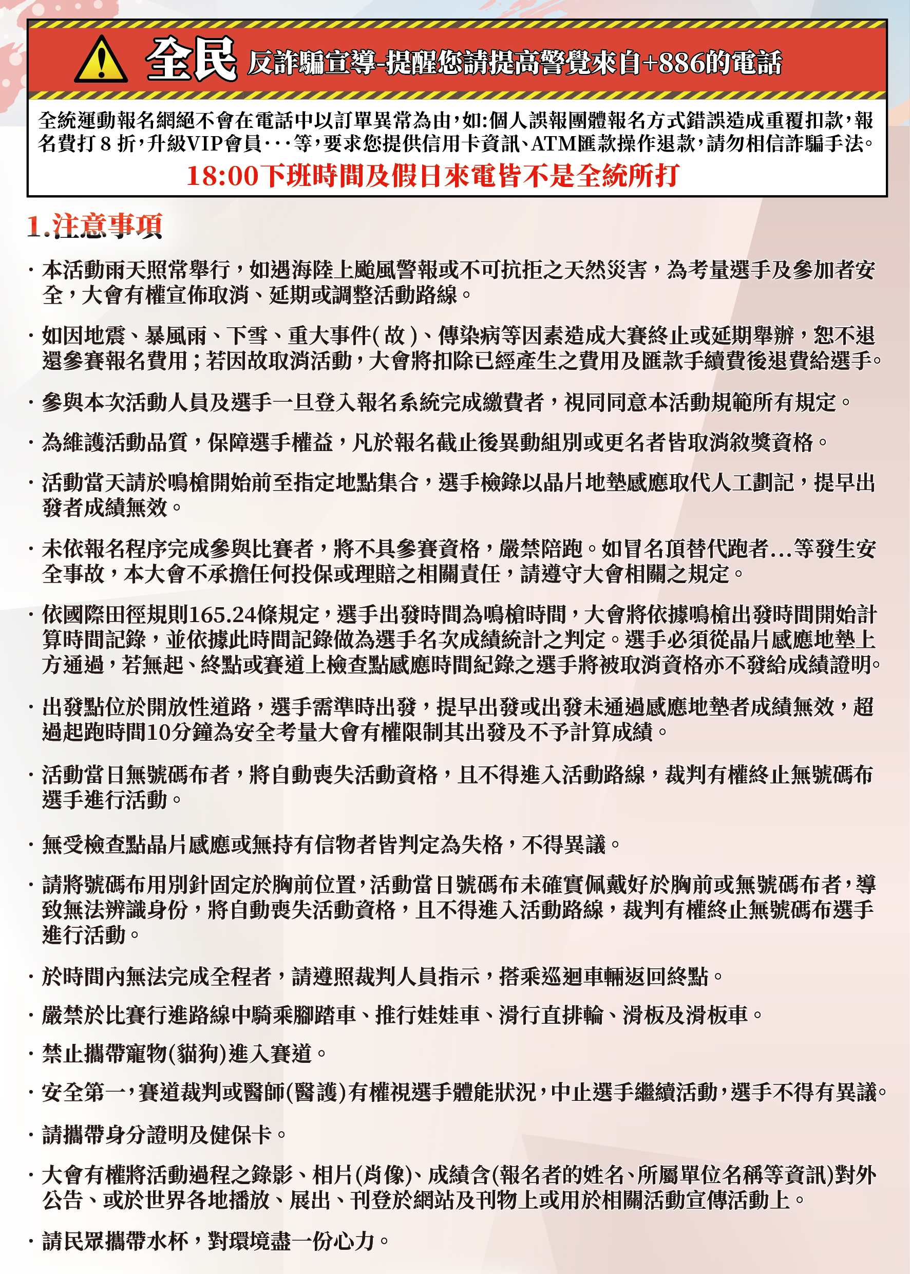 - 收到物資,確認號碼布,請掃描號碼布上的QRcode,可以確認選手須知。