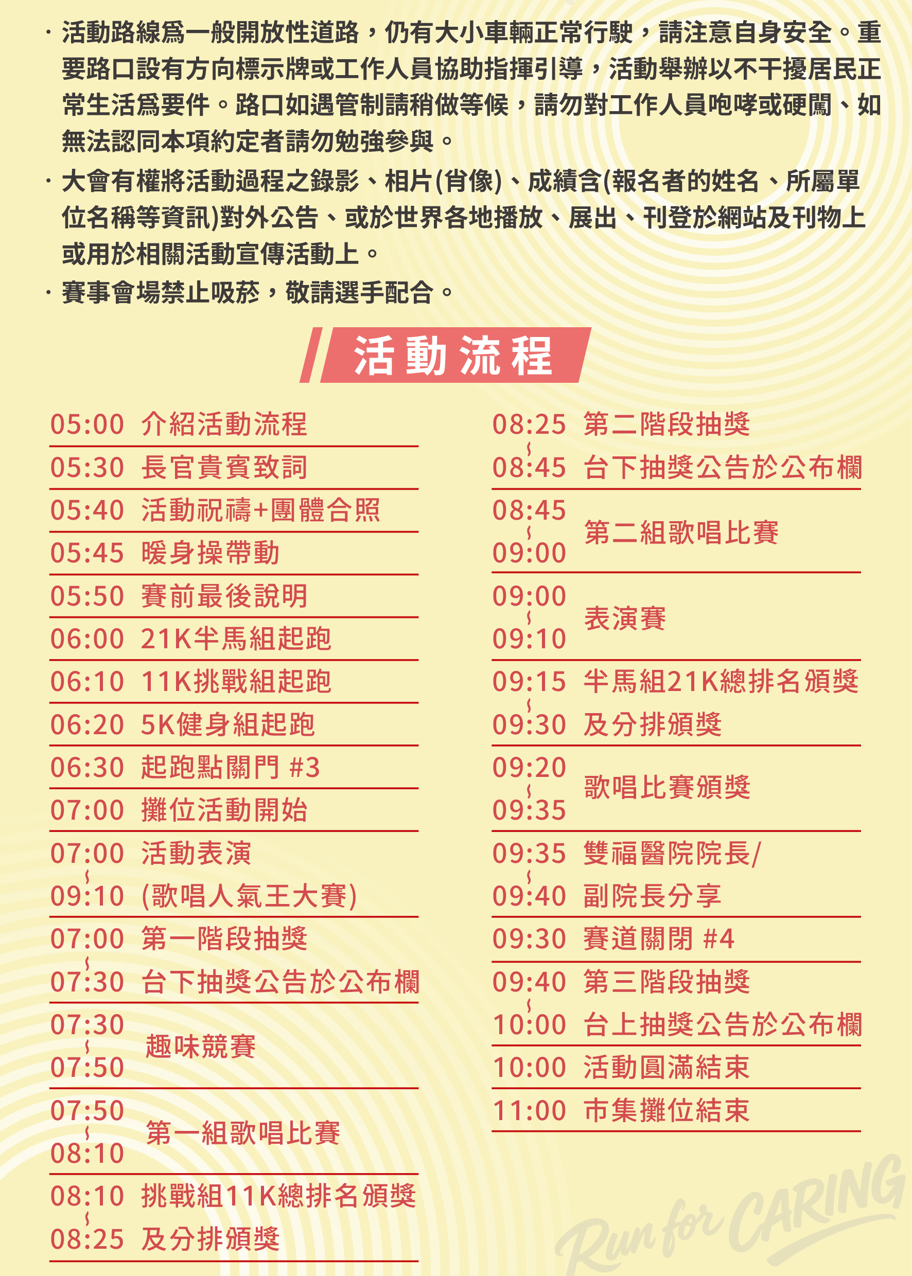 | 05:50 | 賽前最後說明 | 移動至起跑點 |