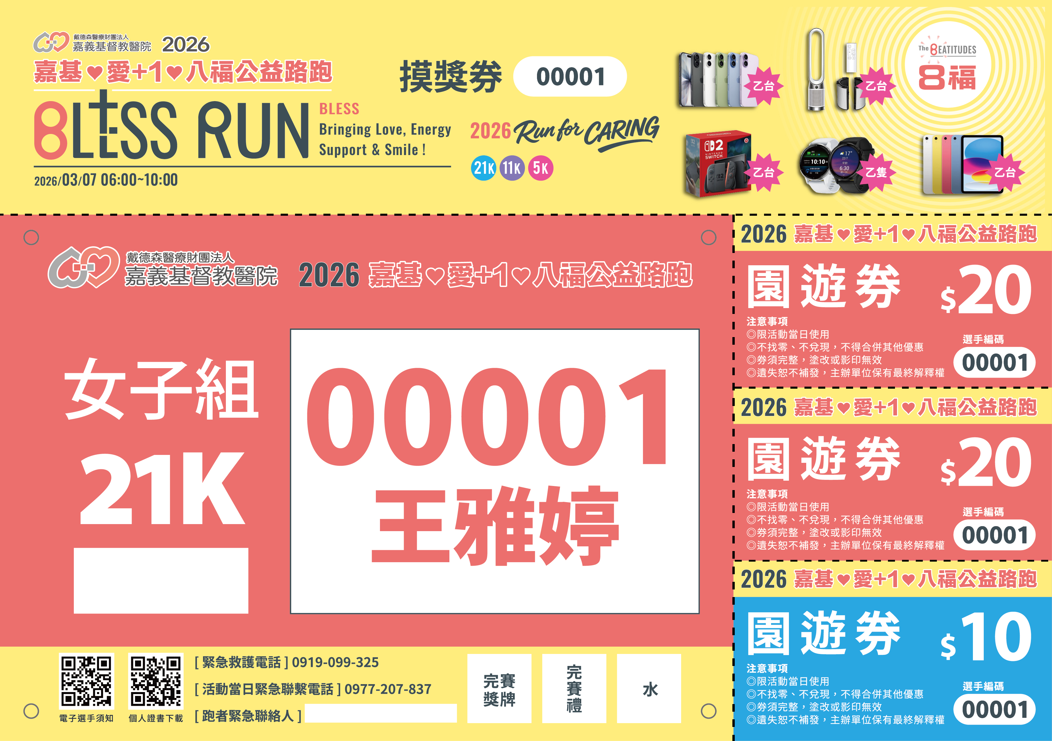 - 本次活動為電子摸彩,活動當天不用投遞摸彩卷,領獎時須出示號碼布上的存根聯。