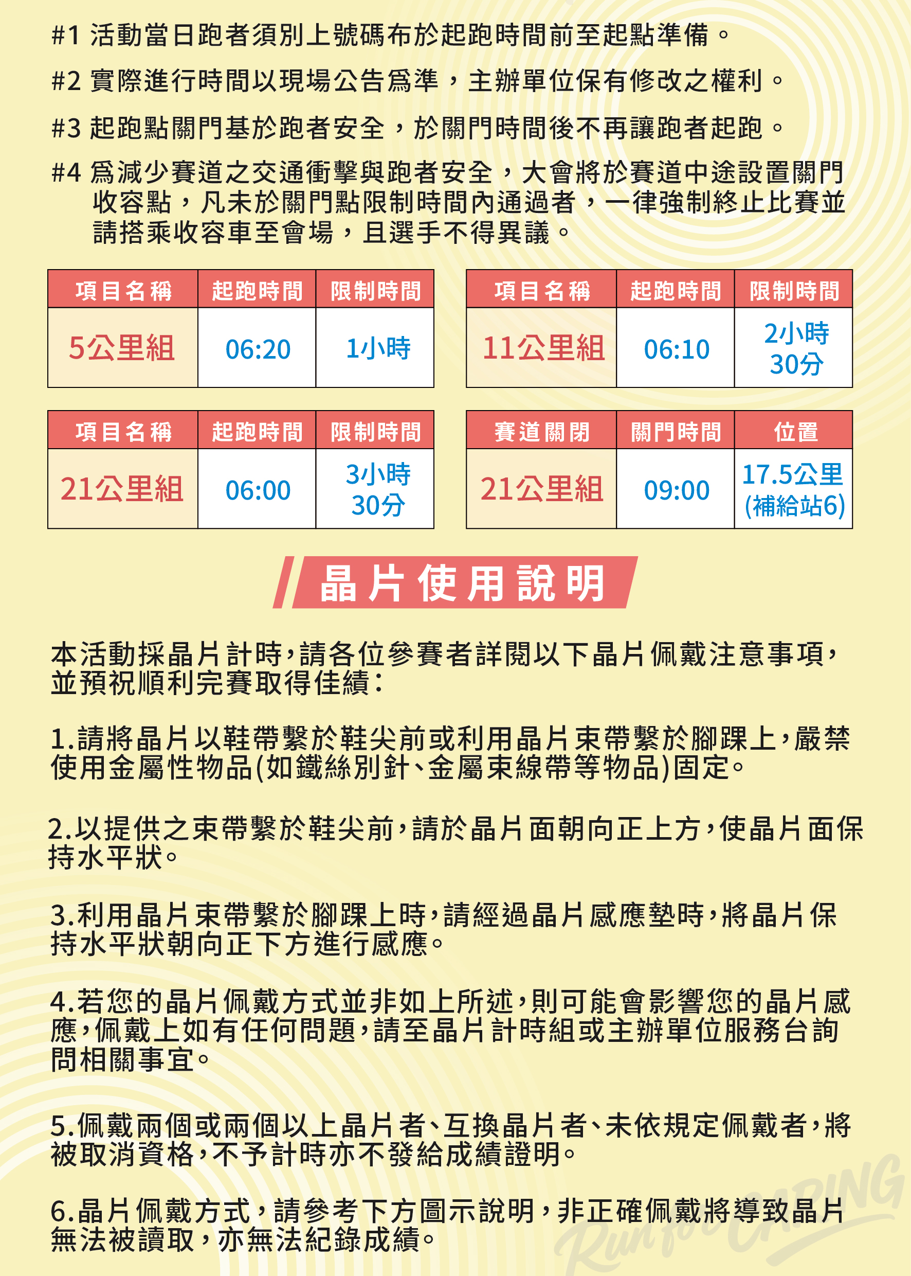 | 06:30 | 起跑點關門 | 禁止跑者起跑※1 |