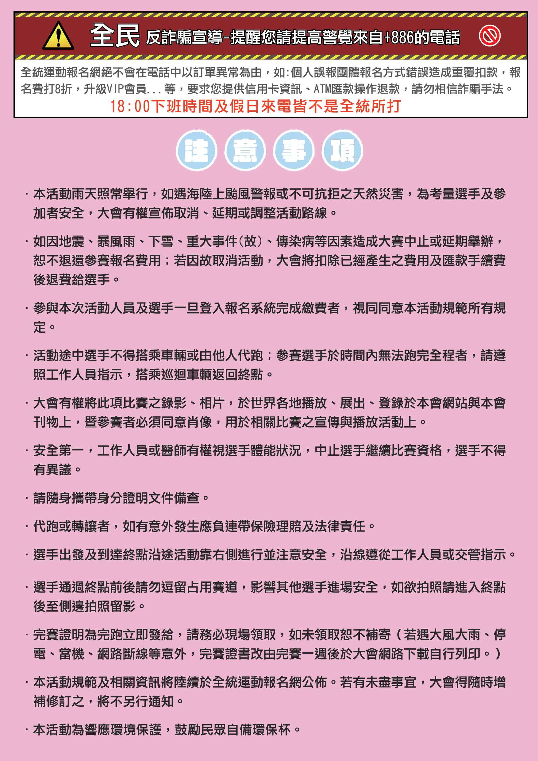 ※5.於賽道時間後未抵達終點者,一律強制乘坐收容車返回會場。