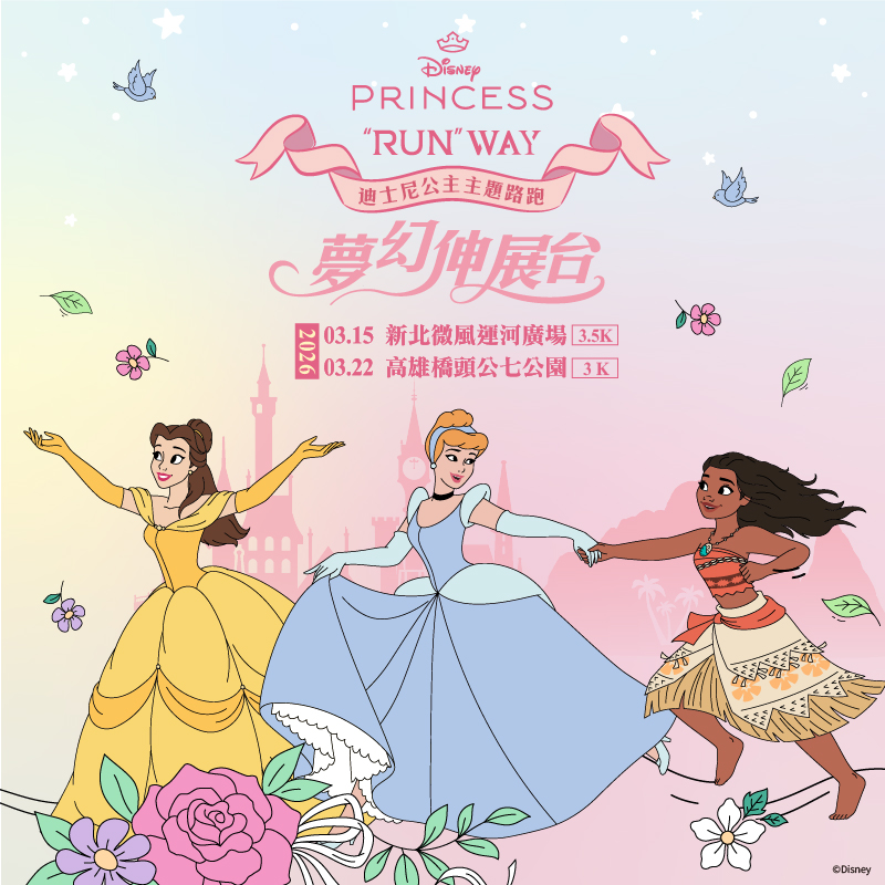 「迪士尼公主主題路跑-夢幻伸展台」將於2026年3月在新北微風運河廣場【3.5K】、高雄橋頭公七公園【3K】兩地舉辦,讓每位跑者彷彿踏上屬於自己的童話”RUN”WAY。每個人心中都有一位迪士尼公主,可能是披甲上陣的花木蘭、放手追夢的樂佩,或是突破自我、擁抱不同的愛麗兒。全統運動浪漫推出2026年《迪士尼公主主題路跑-夢幻伸展台》,本次活動不為比賽誰最美,而是邀請所有參與者選擇自己最舒適的打扮與妝容,用每一步勇敢,走進自己的故事!從夢幻泡泡雨的起跑線、彩妝與編髮間、延伸至閃閃發光的公主夢幻伸展台,每位跑者都能在活動中打造屬於自己的矚目亮點。打造與眾不同沉浸式活動體驗,邀請大家大聲說出:「我,是我故事裡的主角!」 搶先活動期間完成報名繳費,免費送限時好禮▲搶先報名活動期間完成報名繳費就送迪士尼小美人魚系列水壺(隨機)只要在12/11(四)23:59前完成報名與繳費,即可免費獲得【迪士尼小美人魚系列角色水壺】乙個。從小比目魚到賽巴斯汀,角色設計搭配夢幻配色,每一款都具備實用大容量與高顏值,可作為通勤水壺、運動搭檔、孩童上學日常補水首選。   ▲活動共有「1180元閃耀變身組」和「1880元夢幻加冕組」兩種組別。 參加者可依喜好選擇「閃耀變身組」或「夢幻加冕組」報名,所有組別皆含迪士尼公主主題路跑限定物資與完賽證明、獎牌。閃耀變身組含:公主頭紗、化妝箱、毛毯、泡泡棒與補妝鏡;夢幻加冕組則有白雪公主斗篷、抱枕毯與完整進階物資,讓你從起跑到終點,全程夢幻、信心滿滿!    本次路跑最大亮點,全場圍繞夢幻泡泡,讓跑者彷彿置身童話世界在《迪士尼公主主題路跑》的跑道上,有一樣夢幻道具讓人心動不已——迪士尼公主主題魔法泡泡棒,結合泡泡魔法與童話設計,不僅是最佳應援道具,更是童心與自信的具象化身!這支泡泡棒以「小美人魚愛麗兒」為設計主角,搭配夢幻粉紫色系,頂部皇冠造型閃閃發亮,每一個細節都讓人秒飛入童話世界。啟動後,泡泡即隨風飛舞,宛如魔法被施展——讓整個王國為妳綻放。✨特色亮點一次看:● 主題角色設計:以迪士尼公主愛麗兒為主題,女孩最愛!● 泡泡瞬發功能:輕按即釋出夢幻泡泡,打造仙氣氛圍● 精緻造型收藏性強:皇冠+翅膀+透明愛心設計,讓人愛不釋手● 全場最閃配件:伸展台、彩妝間、終點拍照時最吸睛的道具    🎀 夢幻場景開啟 ✨👑【公主編髮室】💫魔法編髮開啟,成為今日的閃亮主角!現場設有「公主編髮室」讓參加者體驗專屬造型時刻~讓女孩們都能找到最適合登上伸展台的華麗造型! 👑【公主彩妝間】💄補給妳的電量與美麗!來到「公主彩妝間」,替參加者換上專屬妝容、閃亮出發!無論是貼鑽、亮粉還是甜美腮紅,讓每位女孩都能化身跑道上最耀眼的主角  👑【公主補充泡泡室】🫧泡泡能量回滿,公主狀態100%!跑累了嗎?快來「公主補充泡泡室」回補妳的夢幻泡泡!專屬設計的補泡區,不管是起跑前的魔法儀式,還是終點後的夢幻收尾,記得來泡泡室補充屬於妳的彩色奇蹟!    迪士尼公主主題路跑活動,夢幻伸展台讓每位跑者自信展現美麗👑【公主夢幻伸展台】在伸展台邁步,讓自信成為最美的禮服!穿著專屬公主物資,走出自己的節奏與風采,留下閃耀瞬間全統運動邀請女孩們放下框架,勇敢登台、自信展現,那一刻,妳已經是最動人的主角。 📍各場次活動資訊如下:👑迪士尼公主主題路跑 - 新北場 【3.5K】活動日期|2026/03/15(日)活動地點|新北微風運河廣場報名連結|ctrun.tw/uX4Vh 👑迪士尼公主主題路跑 - 高雄場 【3K】活動日期|2026/03/22(日)活動地點|高雄橋頭公七公園報名連結|ctrun.tw/WFcV8   迪士尼公主主題路跑報名即日起開放,限量名額錯過不再~趕緊報名獲得你的夢幻伸展台門票吧!